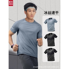 安踏跑步运动套装男冰丝夏季短袖速干衣官方正品透气健身房训练服
