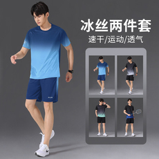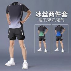 运动服套装男跑步短袖冰丝夏季速干衣篮球服羽毛健身衣服短裤夏天