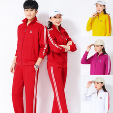 晋冠长袖红色运动服套装男女广场舞健身团体表演班服大码休闲外套