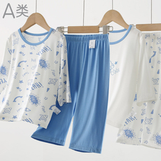 儿童睡衣七分袖夏薄宝宝家居服莫代尔男童长袖长裤春秋中大童套装