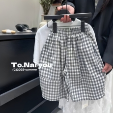 夏装新款中小童韩系时髦百搭格子裤男女童宽松薄款拼接阔腿七分裤