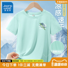 小象汉姆男童冰感短袖T恤2025夏装A类体恤衫篮球跑步中大童潮童装
