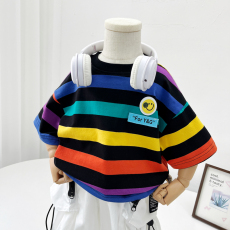 男童条纹短袖t恤2025夏季新款儿童纯棉休闲半袖t帅气男孩圆领体恤