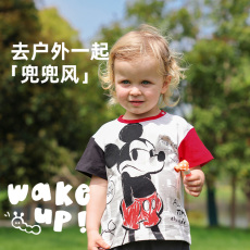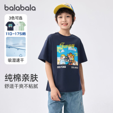ebaer儿童短袖T恤夏季男童抗菌休闲印花体恤女童宽松上衣打底衫