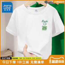 真维斯童装男童t恤短袖夏季男大童半袖体恤儿童中国白色纯棉夏装