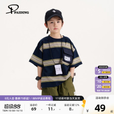 派町童装男童短袖T恤2025新款夏装男孩中大童百搭宽松条纹体恤衫