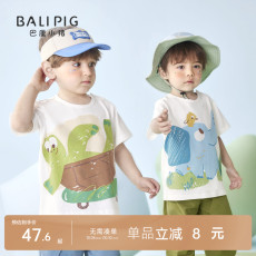 巴布豆男童短袖t恤纯棉体恤夏季童装2025新款宝宝上衣儿童夏装潮