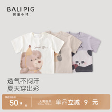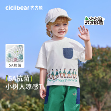 [5A抗菌凉感]齐齐熊宝宝t恤短袖夏款男童印花半袖体恤上衣夏季女