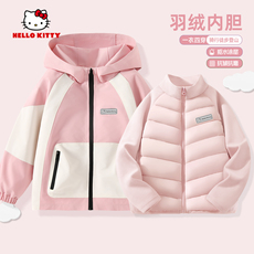 女童秋冬薄外套库洛米衣服加绒两面穿防水防风三合一冲锋衣可拆卸