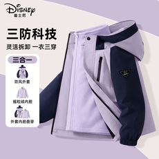 迪士尼女童外套2025新款秋冬三防保暖儿童冲锋衣三合一摇粒绒内胆