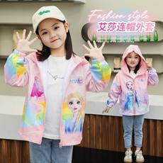 女童公主眼镜连帽冲锋衣亮灯外套25新款儿童洋气春秋夹克加绒艾莎
