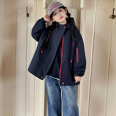 女童冲锋衣春秋2025新款中大童连帽刺绣外套韩版防水三合一拉链衫
