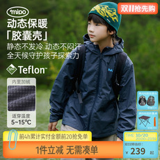 mipo秋季儿童冲锋外套三防运动男女童户外防风防水摇粒绒连帽上衣