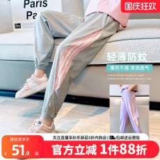 巴布豆童装女童裤子夏薄款2025新款儿童夏季防蚊裤女孩天丝牛仔裤
