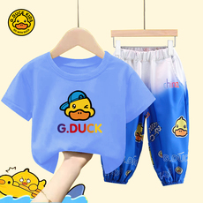 小黄鸭儿童t恤夏装套装2025新款洋气纯棉短袖男女童8防蚊裤两件潮