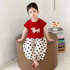 女童夏装套装洋气时尚女孩宝宝夏款儿童小狗短袖波点防蚊裤两件套