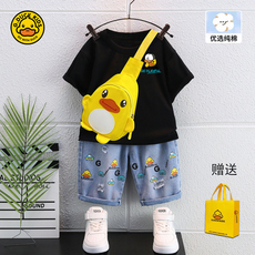 小黄鸭儿童短袖套装2025夏装新款男女童透气T恤2宝宝短裤两件套潮