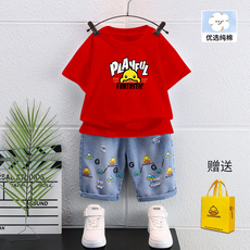 右欧男童夏季两件套女童短袖T恤牛仔裤套装儿童夏装新款洋气童装