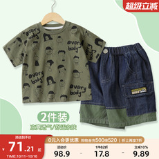 右欧童装男童套装夏季新款时髦短袖短裤儿童宝宝夏装女童两件套