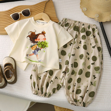 女童夏季套装2025新款超好看儿童衣服女宝宝夏装短袖防蚊裤两件套