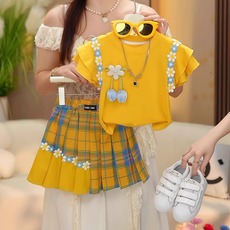 女童短袖T恤套装夏季2025新款儿童洋气上衣夏装女孩百褶裙两件套