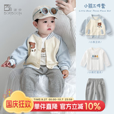 婴儿套装男宝宝秋装洋气三件套男童棒球服卫衣儿童春秋款外套衣服