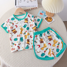 儿童短袖套装女童夏装时髦短裤t恤睡衣薄款韩版男宝宝空调家居服
