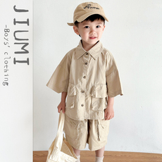 韩版童装2025夏季男童衬衫套装儿童休闲上衣中小童宽松工装裤夏装