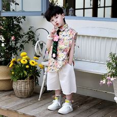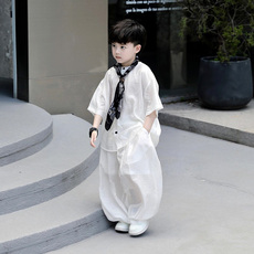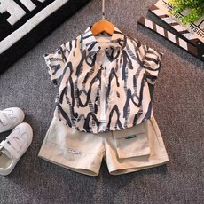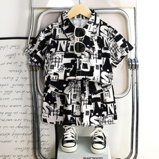 新款儿童衬衫短袖套装薄款男童洋气夏装帅气宝宝夏季两件套韩版