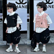 儿童韩版宽松坎肩T恤上衣男童背心工装短裤五分裤套装2男宝宝夏装