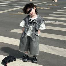 男童夏装套装2025新款韩版儿童水洗牛仔破边马甲宝宝短裤三件套潮