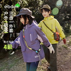 EBAER儿童三合一冲锋外套2025春秋款新款男女童户外防风防水上衣