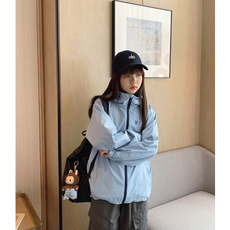 女童拼接三合一可脱卸连帽冲锋衣秋冬中大童保暖加绒加厚风衣外套