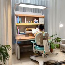 爱果乐灯桌一体儿童学习桌家用书桌可升降实木写字桌椅套装沉浸岛