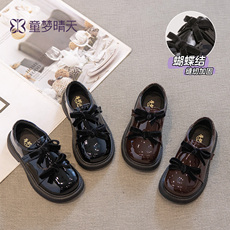 女童皮鞋2025春秋新款蝴蝶结公主鞋小女孩舞蹈演出单鞋软底豆豆鞋
