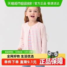 英氏女童毛衣针织开衫加厚保暖2025秋装新款儿童女孩粉色开衫外套