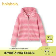 巴拉巴拉女童毛衣儿童针织衫春秋装中大童开衫连帽简约条纹上衣潮