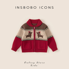 INSbobo男童毛衣2025秋冬新款宝宝开衫外套女童冬季洋气保暖上衣