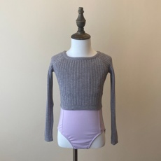 舞小兔灰色一字领舞蹈毛衣儿童舞蹈服练功服女童跳舞秋冬外套套装