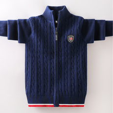 男童针织开衫儿童毛衣外套春秋厚款纯棉洋气中大童女童红色针织衫