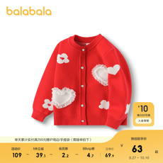柔软全棉 不起球~男女童针织开衫外套春秋季薄款爱心儿童红色毛衣