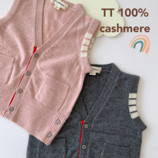 TTcashmere 儿童羊绒衫 男童马甲女童背心 V领开衫宝宝毛衣