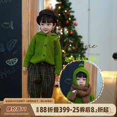 砚台家韩版宝宝毛衣儿童针织开衫连帽外套男女童洋气潮春秋款绿色