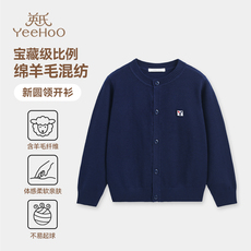 英氏女童毛衣开衫2025秋装新款儿童圆领针织衫男童长袖薄款外套潮