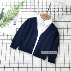 纯棉男童针织V领开衫纯色儿童外搭毛衣外套女童宝春装针织衫