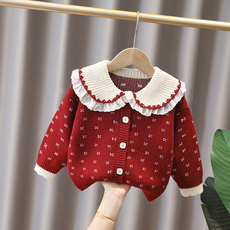童泰2022新款宝宝毛衣外套女童针织开衫纯棉秋装女孩儿童毛衣女款