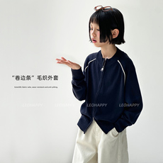 小学生校服毛衣开衫女童藏青色外套中大童纯棉毛衫男童翻领针织衫