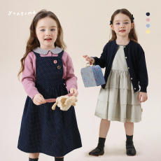 Yumi妈儿童秋装针织开衫字母外套女童韩版纯色单排扣毛衣25F079