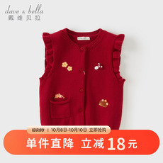 戴维贝拉儿童毛衣针织衫2025女童新款纯棉马甲开衫女宝宝上衣秋装