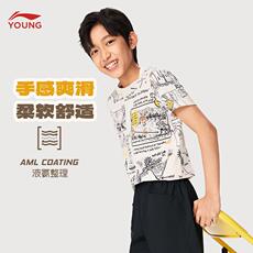 李宁童装2026夏季新品男大童印花百搭透气舒适T恤圆领短袖文化衫